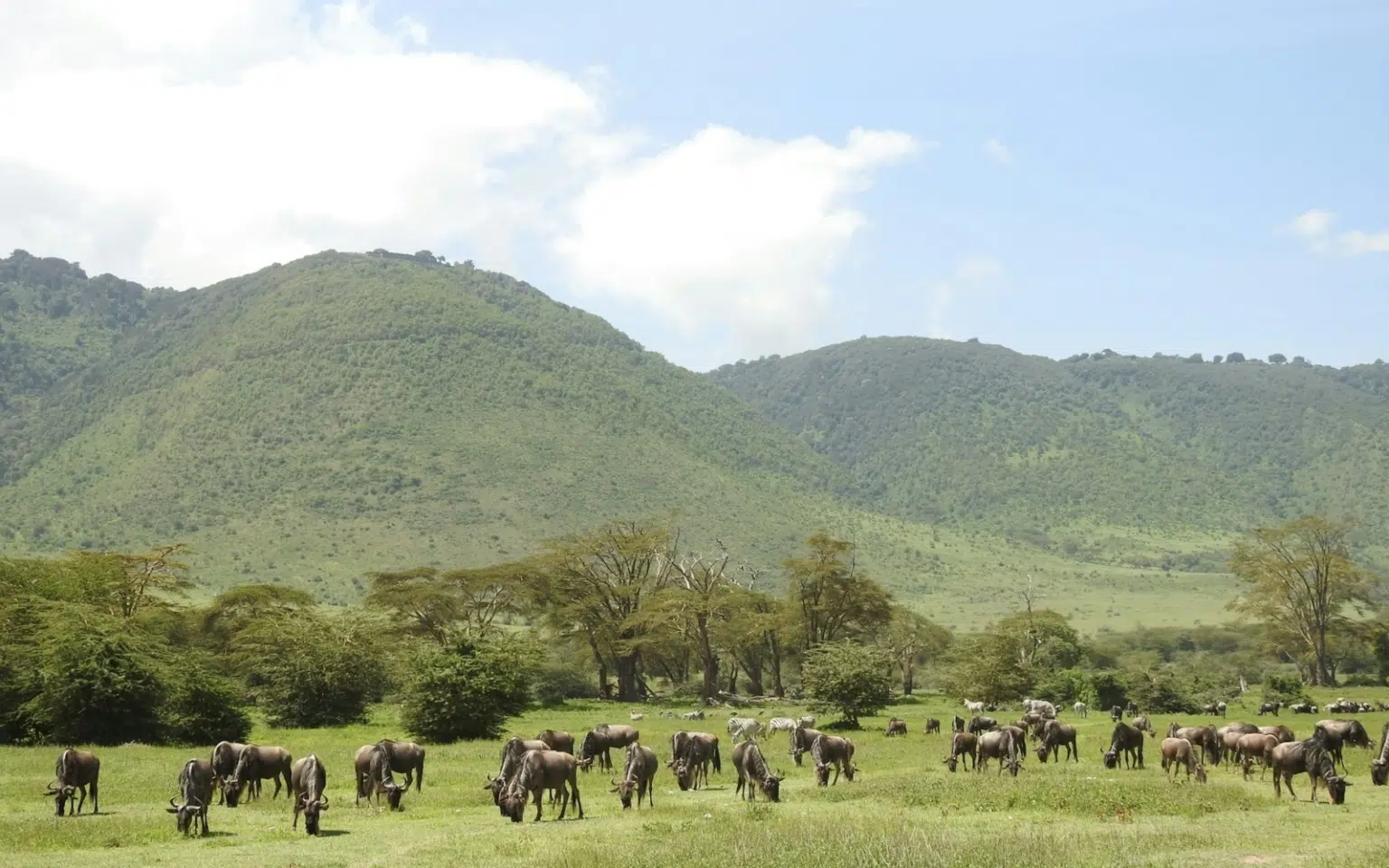 Départ matinal pour descendre dans le cratère du Ngorongoro, véritable arche de Noé abritant une densité animale exceptionnelle : lions, rhinocéros noirs, éléphants, buffles… Déjeuner pique-nique au cœur du site. Dans l’après-midi, remontée vers Karatu pour un moment de détente au lodge.