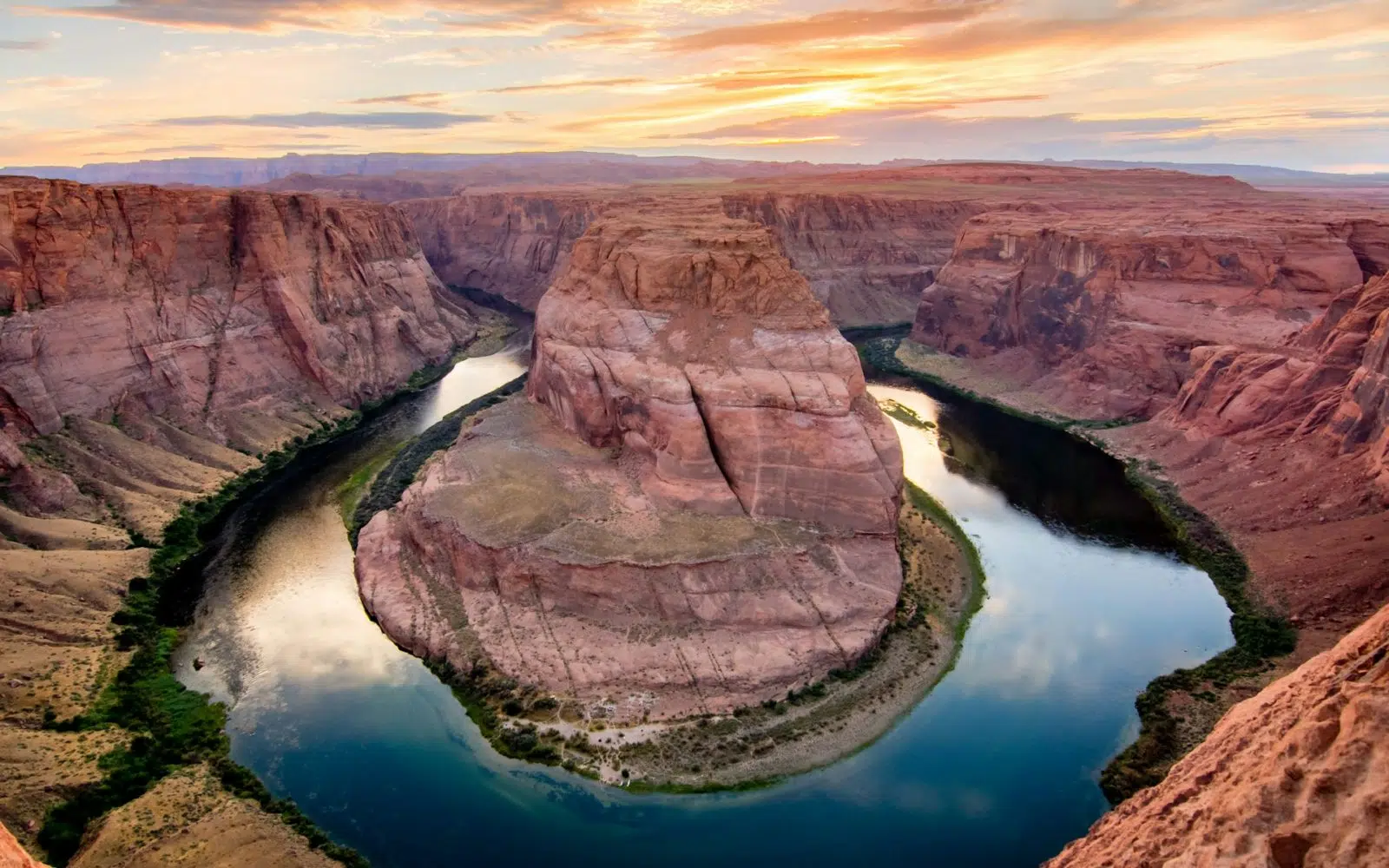 Une seconde journée sur Page vous permet de vous aventurer plus loin. Antelope Canyon, véritable chef-d’œuvre sculpté par le temps, dévoile ses draperies de pierre et de lumière. Ce canyon sec, réveillé par les pluies saisonnières, vous accueille par une étroite faille taillée dans la roche, offrant la sensation unique de s’immiscer au cœur même de la terre. Non loin, Horseshoe Bend offre un spectacle grandiose : le fleuve Colorado y décrit un méandre parfait, un virage à 180° ciselé dans des gorges ocre et rouge. Après avoir suivi un sentier ensablé et franchi une colline, le panorama s’offre enfin à vous : majestueux, intemporel. La magie opère dans ce dialogue subtil entre la terre, l’eau et le ciel, empreint d’une sérénité inoubliable.