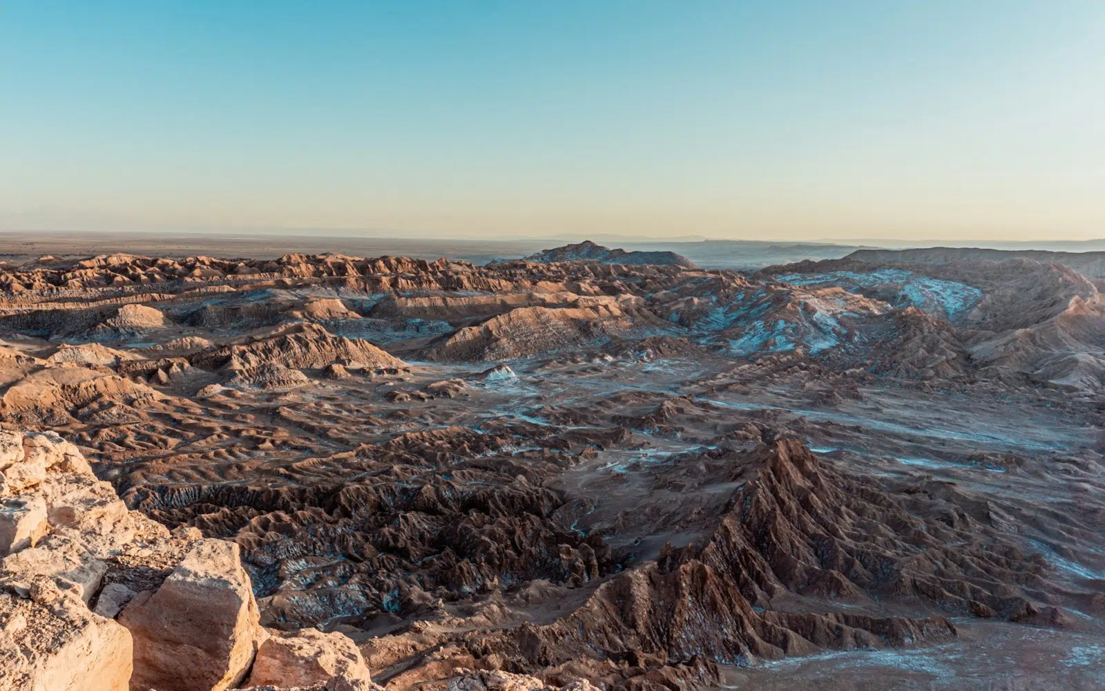 Entourée de dunes sculptées par le vent, de croûtes de sel étincelantes et de montagnes aux teintes brunes qui tranchent avec l’azur du ciel, la Vallée de la Lune porte bien son nom. Ce décor minéral, situé au cœur du désert d’Atacama, évoque les paysages lunaires les plus spectaculaires.