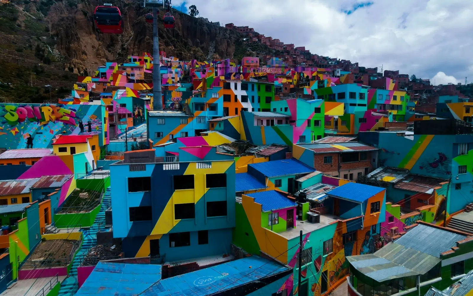 Poursuivez vers la rue Jaén, unique vestige du XVIIᵉ siècle, dont les façades colorées et les balcons de bois évoquent la mémoire coloniale de la ville. Puis, changement de perspective : un survol urbain à bord des télécabines offre une vue spectaculaire sur La Paz, accrochée à flanc de montagne, vibrant de vie et de contrastes.