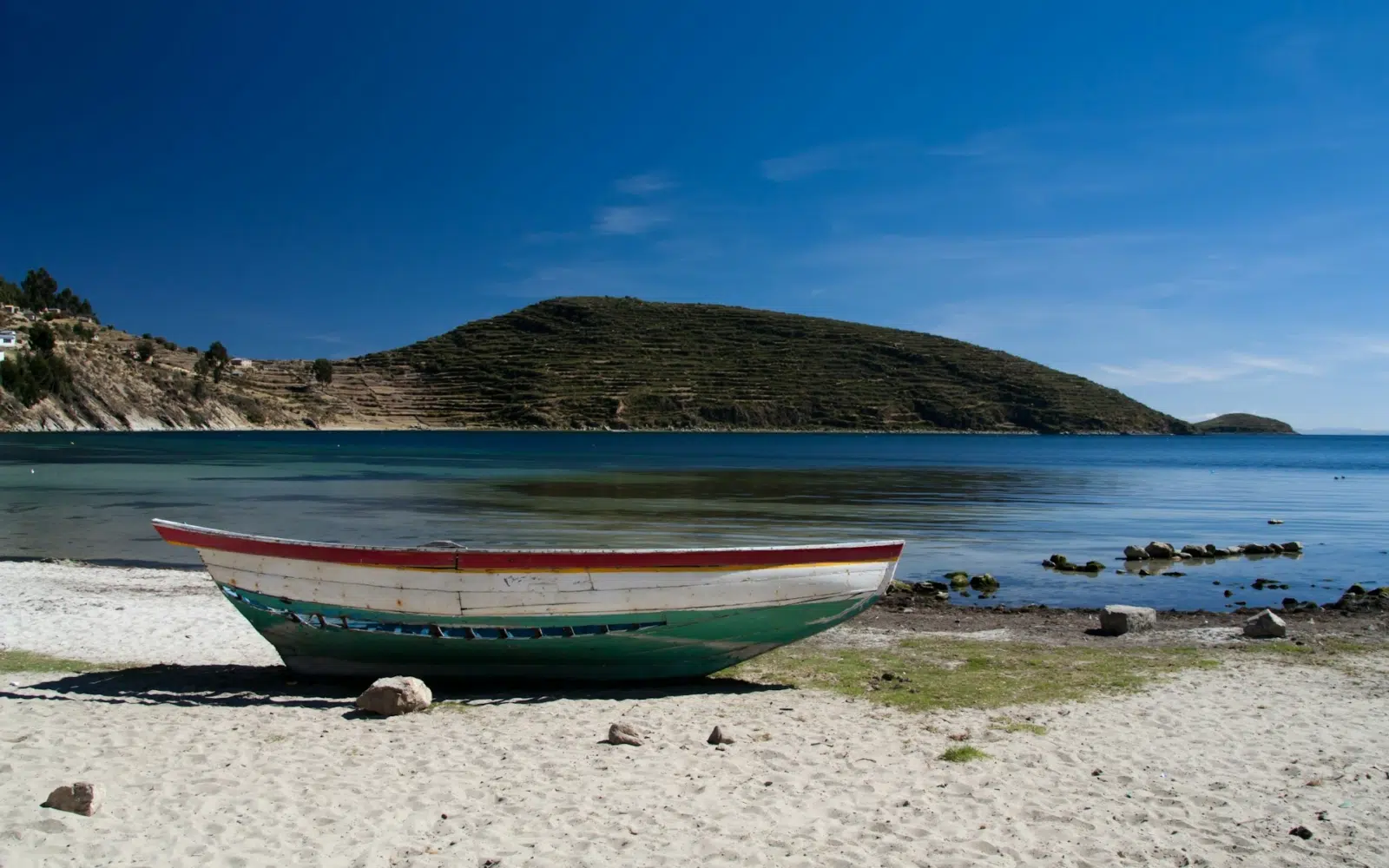 À l’arrivée à Copacabana, charmante bourgade nichée sur les rives du lac, visite de la basilique mineure, haut lieu de pèlerinage abritant la Vierge de la Chandelière, sainte patronne de la Bolivie. L’aventure se poursuit à bord d’un bateau à moteur privé, glissant sur les eaux étincelantes du lac en direction de la mythique île du Soleil. Selon la légende, c’est ici que naquirent Manco Cápac et Mama Ocllo, enfants du Dieu Soleil et fondateurs de l’empire inca.