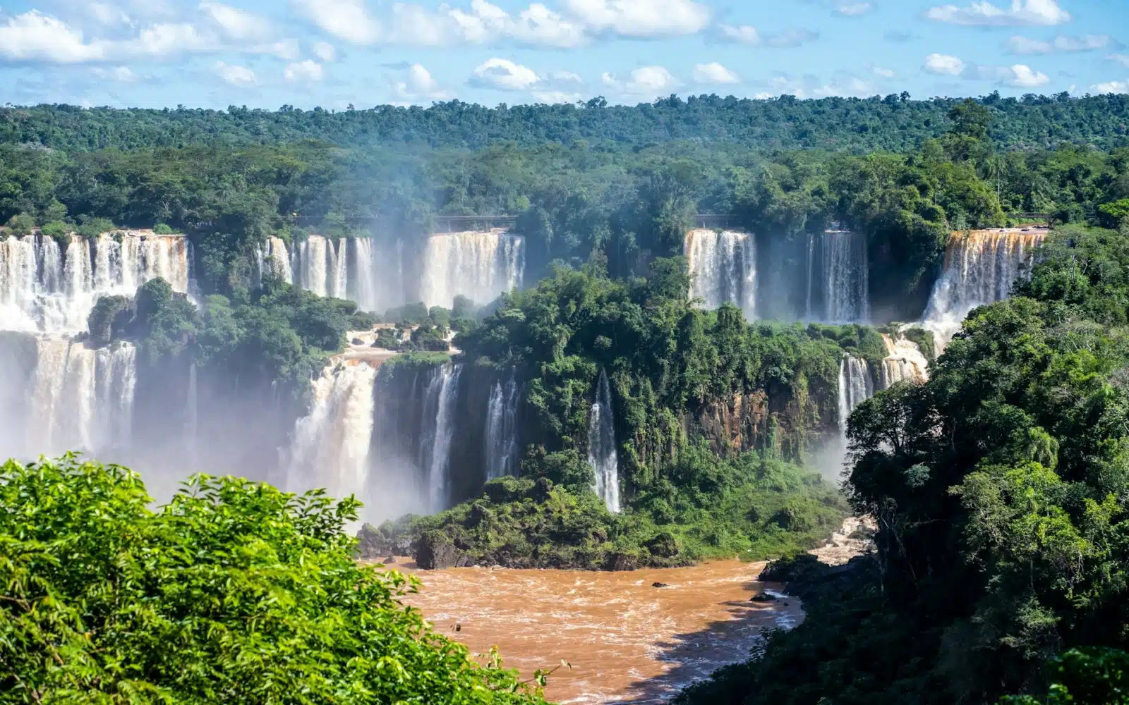 Les Chutes d’Iguaçu comptent parmi les plus spectaculaires au monde. Ici, 275 cascades se déversent sur près de 3 kilomètres de largeur, dans un fracas continu où la brume dessine des arcs-en-ciel éphémères. Au cœur de cet amphithéâtre naturel, la Gorge du Diable concentre toute la démesure du lieu : quatorze chutes s’y engouffrent dans un rugissement hypnotique.