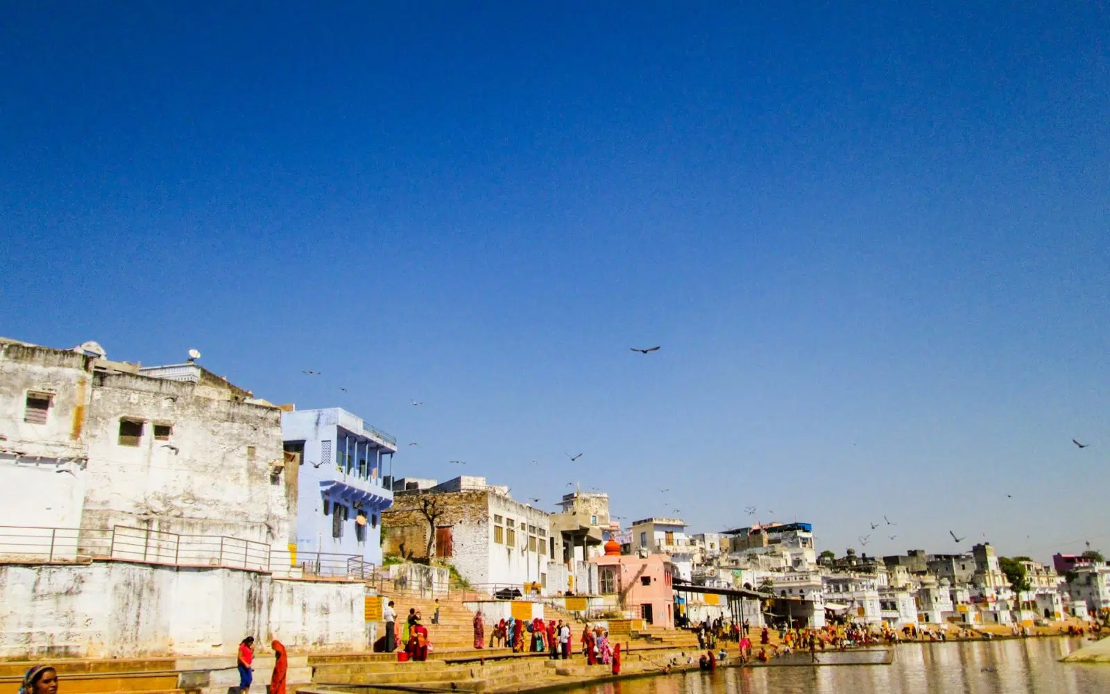 Puis vous arrivez à Pushkar, un site de pèlerinage de premier plan, se détend sur les berges sacrées du lac éponyme. Cette ville, étroitement liée à Brahmâ, le dieu créateur de l’univers dans l’hindouisme, est une ville tranquille. On prend le temps : d’observer les pèlerins se purifier sur les ghats immergés qui entourent le lac, de ressentir la spiritualité du seul temple en Inde dédié à Brahmâ, de goûter à l’atmosphère relaxante qui rappelle les années 70, quand les hippies fréquentaient le lieu avec enthousiasme.