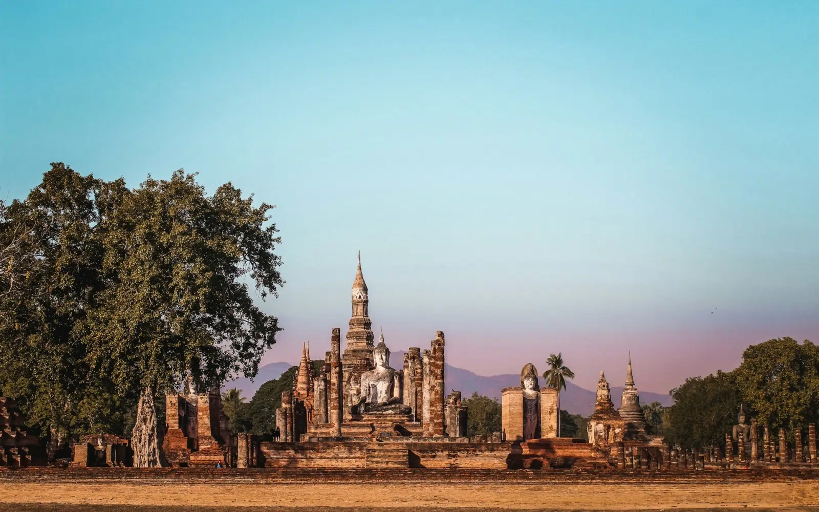 Les silhouettes paisibles des Bouddhas de bronze ou de pierre se reflètent dans les eaux calmes.Sukhothai vous invite à respirer au rythme de son passé.