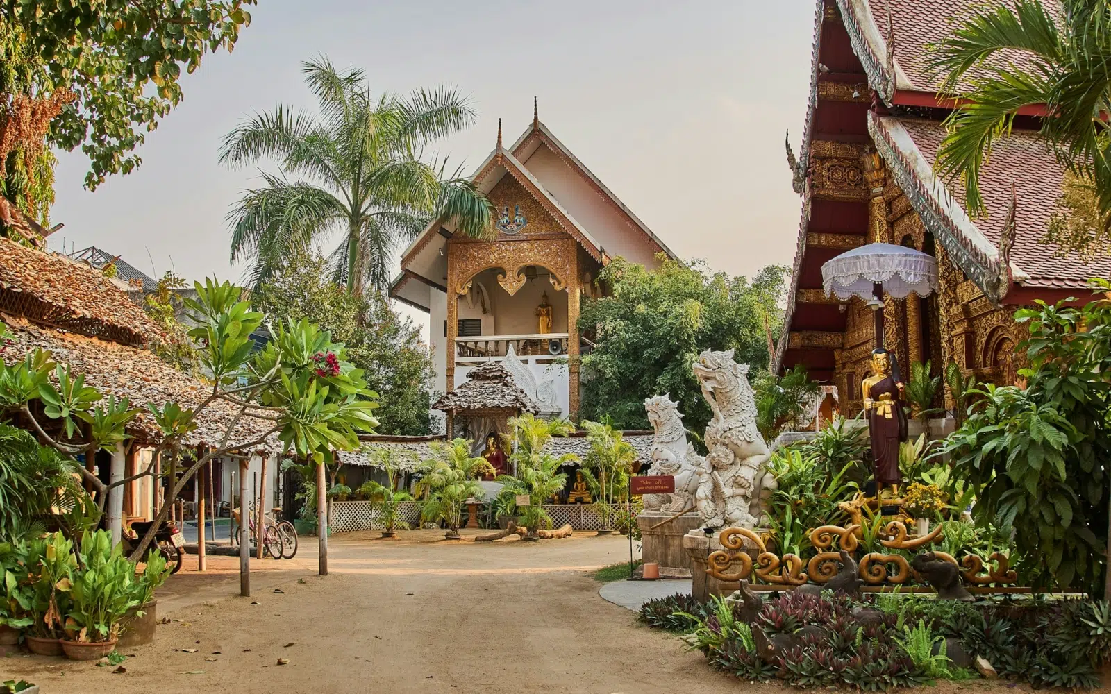 La journée s’ouvre en douceur sur la Vieille Ville de Chiang Mai, lovée derrière ses remparts et ses douves paisibles. À pied ou en tuk-tuk, vous explorez ses ruelles bordées de frangipaniers, où s’élèvent les silhouettes élancées des temples Lanna. Le Wat Chedi Luang, majestueux vestige du XIVᵉ siècle, impressionne par sa base massive de briques blondes. Le Wat Phra Singh, chef-d’œuvre d’élégance et de spiritualité, abrite quant à lui l’une des statues les plus vénérées du Bouddha.