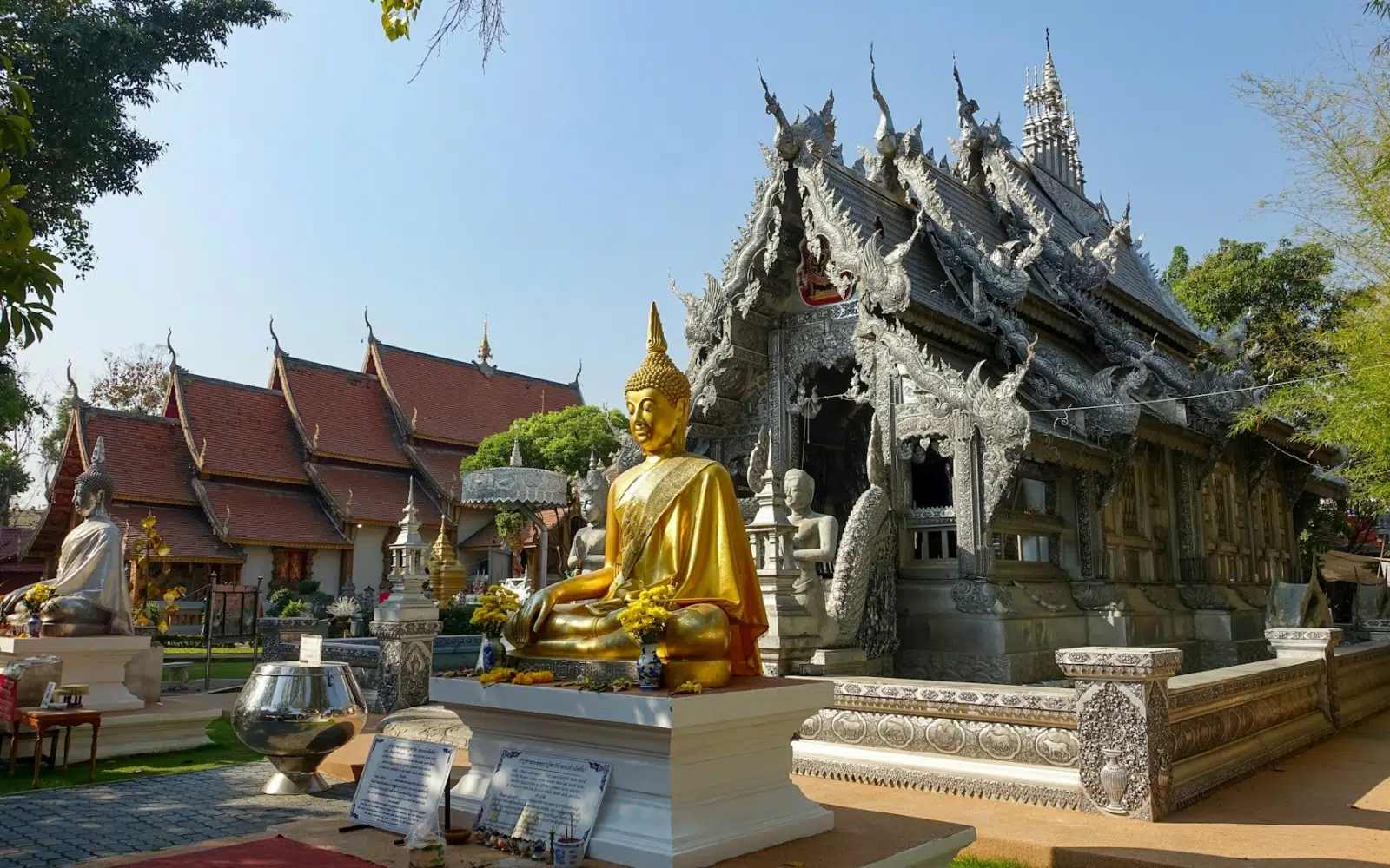 L’après-midi vous entraîne vers San Kamphaeng, village d’artisans dont la réputation dépasse les frontières. Ici, la soie s’entrelace entre les doigts habiles des tisserandes, les pinceaux colorent les ombrelles de papier et le bois se transforme en fines sculptures. Le temps ralentit, au rythme des gestes transmis de génération en génération. Peut-être trouverez-vous là le souvenir parfait.
