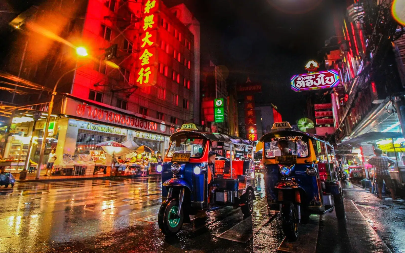 Lorsque la chaleur retombe, Bangkok s’illumine à nouveau. Le soir venu, embarquez à bord du moyen de transport le plus emblématique de la ville : le tuk-tuk, pétaradant et joyeux. Vous traversez alors Rattanakosin, le cœur historique de la capitale, bordé par le fleuve et ponctué de temples aux flèches dorées. C’est l’heure idéale pour goûter à l’art de vivre thaïlandais, quand les habitants sortent flâner et que les étals s’animent.