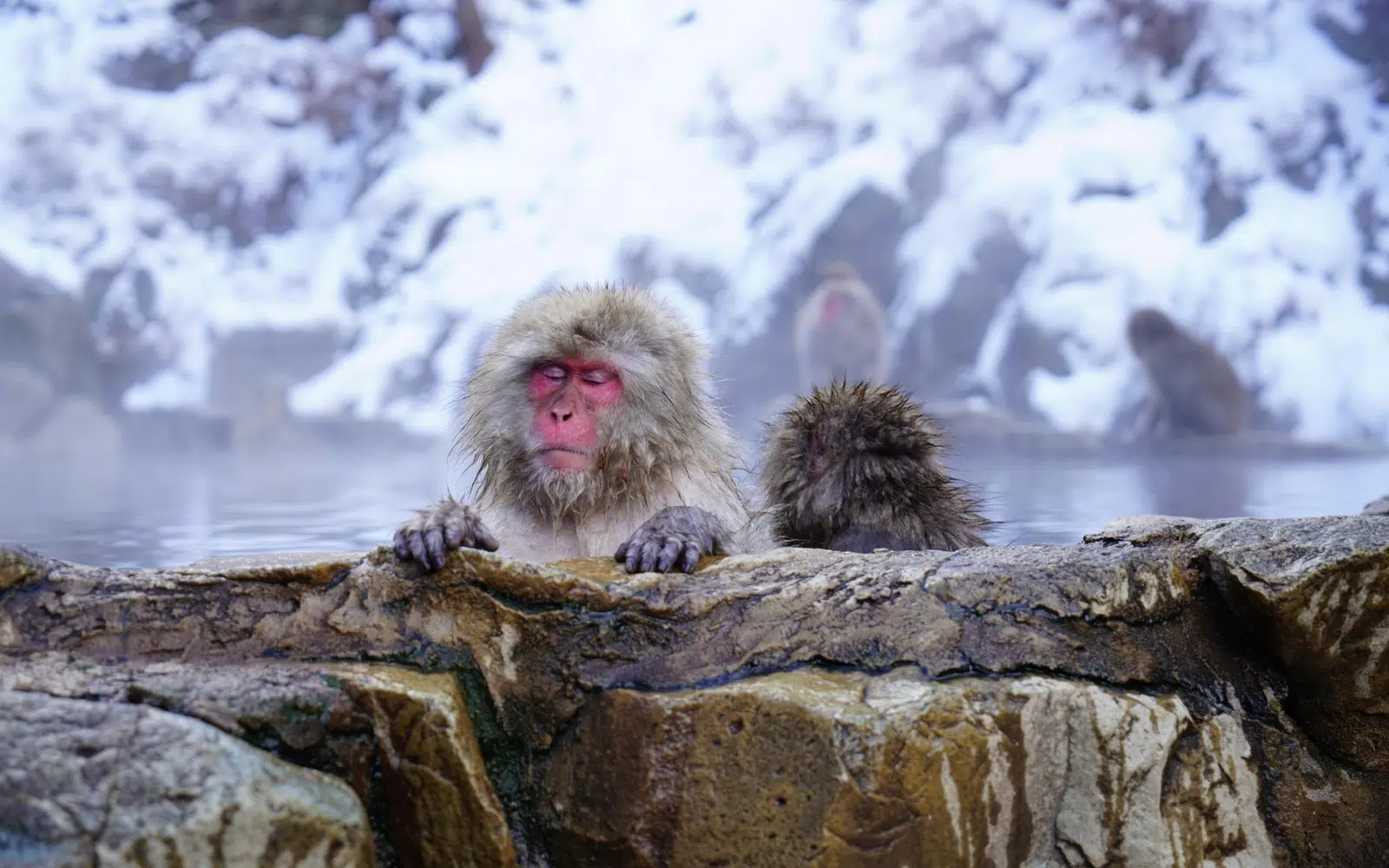 Les autres stars du village sont les singes des neiges. Bien que vous puissiez peut-être avoir la chance d’en apercevoir se promenant dans la ville, il faudra vous rendre au Jigokudani Monkey Park pour mieux les observer. Ces derniers se plaisent à profiter, tout comme nous, des bienfaits des sources d’eaux chaudes de la montagne.