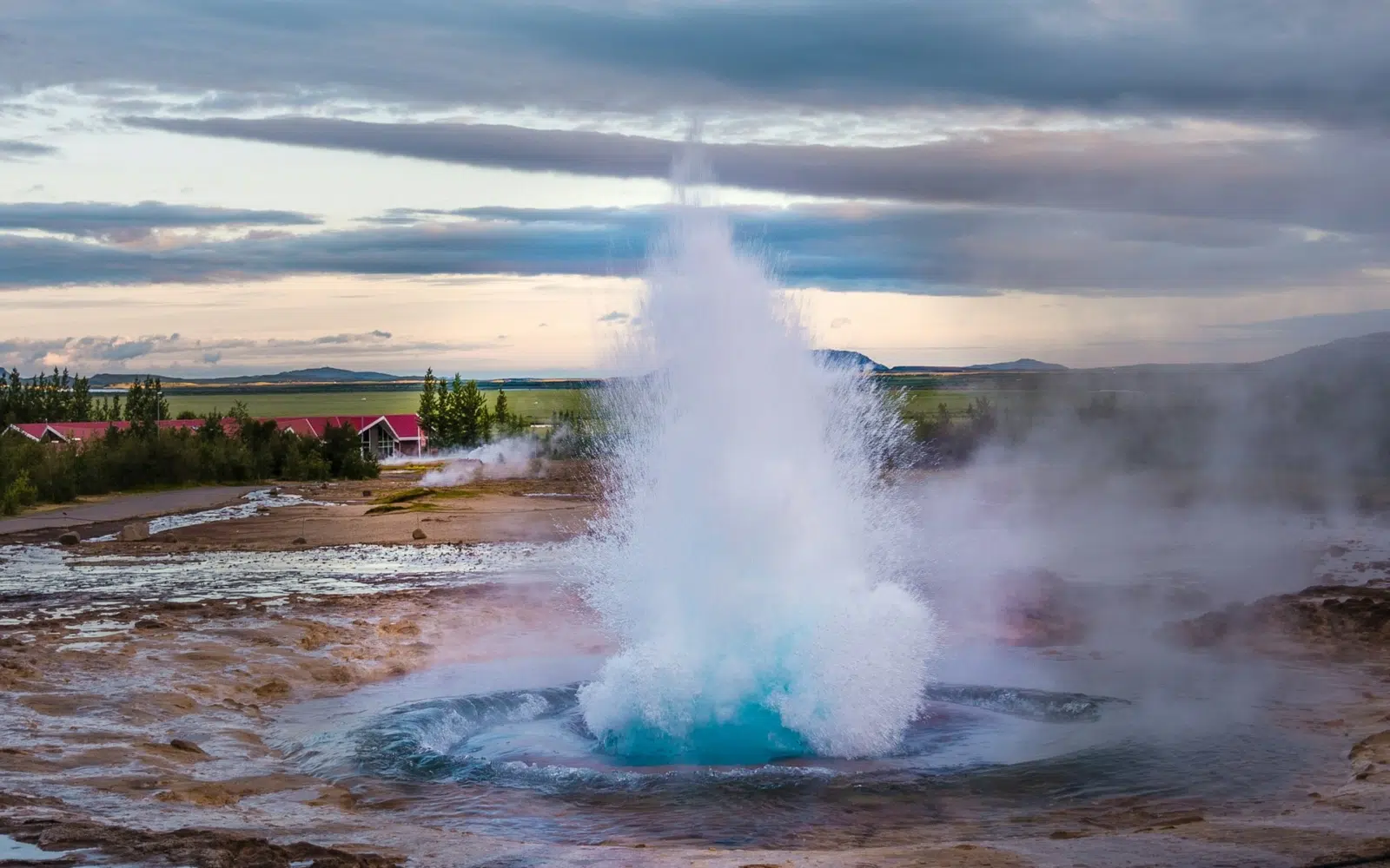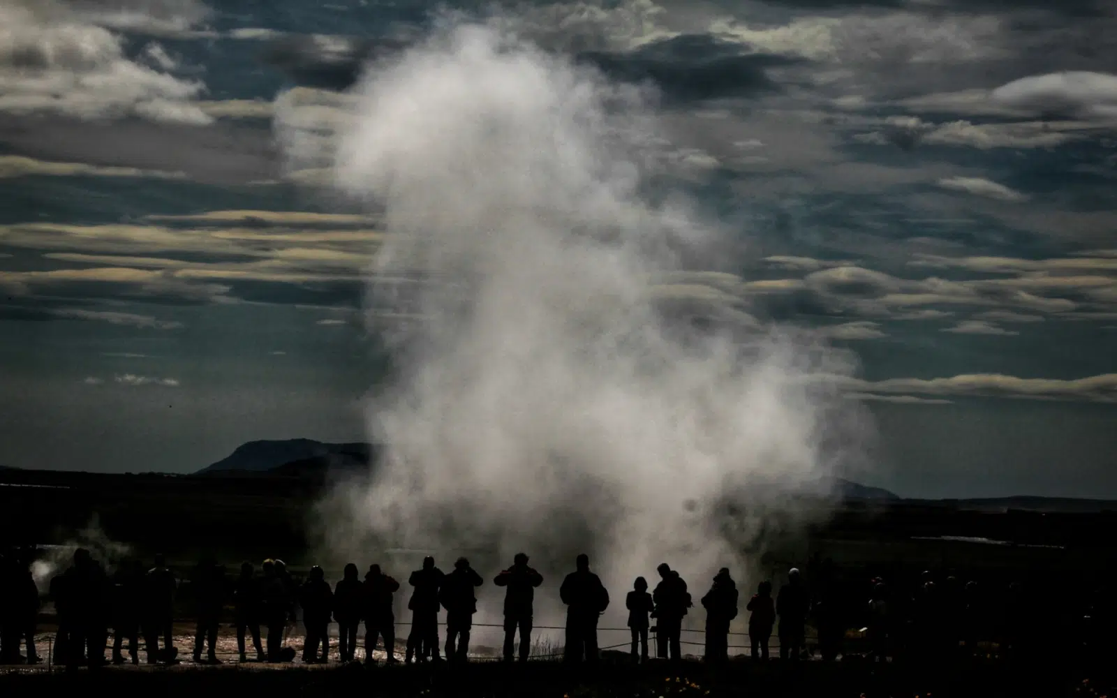 Retour sur vos pas. Dans la vallée de Haukadalur, le site géothermique de Geysir libère sa puissance dans les airs. Fumerolles, mares bouillonnantes et geysers en activité vous rappellent que l’Islande vit, bouillonne, respire. Des restes volcaniques sculptent le paysage : dômes, cratères et plateaux évoquent un banquet géologique figé dans le temps mais toujours en mouvement.