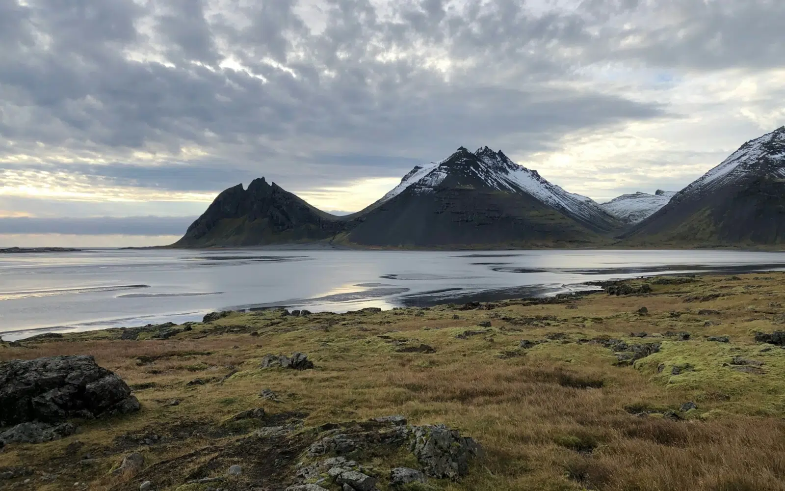 Le silence est seulement troublé par le clapotis de l’eau et le cri des goélands. Les eiders, fidèles à cette région, glissent sans effort sur l’eau. La plage de sable noir, en face, est le théâtre permanent des morceaux de glace échoués qui scintillent.