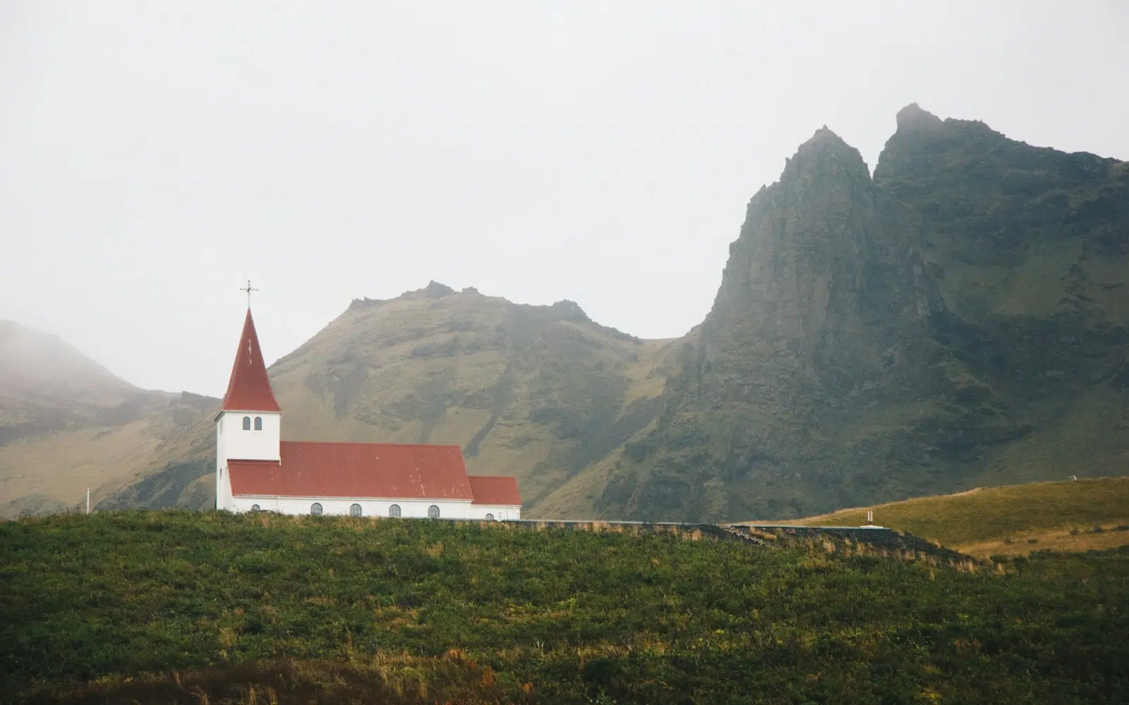 Cap au sud de l’île, direction Vik, charmant village niché entre collines verdoyantes et falaises abruptes. La route qui y mène longe une côte splendide, flanquée de plages de sable noir, cascades, lagunes glaciaires et falaises que les oiseaux marins ont transformées en cités vivantes. Les contrastes sont saisissants : le vert profond des pâturages, le noir intense des formations volcaniques, le blanc éclatant du glacier Mýrdalsjökull en toile de fond.