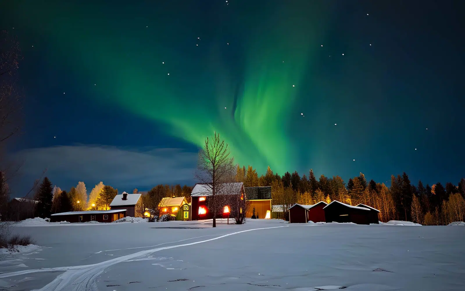 En soirée, rendez-vous pour une expérience nocturne inoubliable. Départ pour une randonnée en raquettes à la recherche des aurores boréales. La nuit polaire révèle un autre visage de la Laponie : la forêt devient mystérieuse, les sons se font plus rares et les traces laissées par les animaux nocturnes racontent la vie discrète de la faune locale. Si le ciel est dégagé, la voie lactée, les étoiles et les aurores boréales illuminent le ciel de leurs voiles dansants. Une pause autour de boissons chaudes permet de se réchauffer et d’écouter les récits du guide sur les légendes et les secrets de ces phénomènes fascinants.