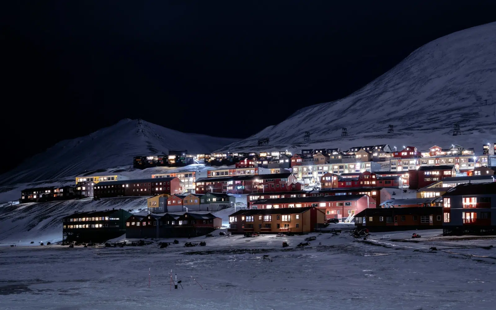 On est ici à 1 000 km du pôle Nord, dans une vallée cernée de montagnes glaciaires et battue par les vents. La ville affiche fièrement sa position extrême sur les murs de son université, de son église et de sa galerie d’art. En hiver, c’est la nuit polaire qui règne, et en été, le soleil ne se couche plus. Environ 2 600 habitants vivent là, souvent à motoneige ou en traîneau, partageant les lieux avec rennes, renards arctiques et… ours blancs.