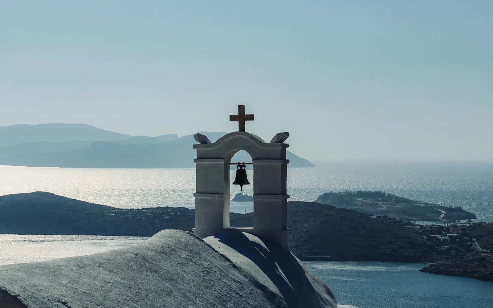 La promenade débute à Chora, capitale accrochée à flanc de colline. Labyrinthe de ruelles blanches éclaboussées de bougainvilliers, escaliers en pierre, portes bleues… ici, chaque tournant est une carte postale. Le village est entièrement piéton. Pour les plus téméraires, un sentier s’élève jusqu’aux quatre églises qui veillent sur les hauteurs. Là-haut, le silence est saisissant, seulement troublé par le souffle du vent et la vue spectaculaire sur la baie de Gialos et l’île voisine de Sikinos.
