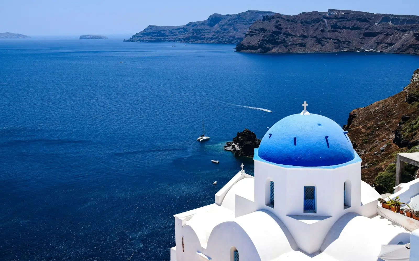 Santorin, posée sur un volcan endormi, fascine autant qu’elle impressionne. Ses falaises abruptes plongent dans une caldeira aux reflets profonds, sculptée par l’éruption qui, dit-on, inspira le mythe de l’Atlantide. Accrochés à flanc de cratère, les villages blancs offrent des panoramas saisissants, entre ciel, lave et mer. Chaque ruelle dévoile une nouvelle perspective, chaque terrasse une lumière différente. Sur les plages de sable noir ou rouge, nées des entrailles de la terre, on fait halte entre deux découvertes : sites archéologiques, musées volcaniques ou randonnées panoramiques. Santorin est plus qu’une destination : un spectacle, une légende, un monde à part.