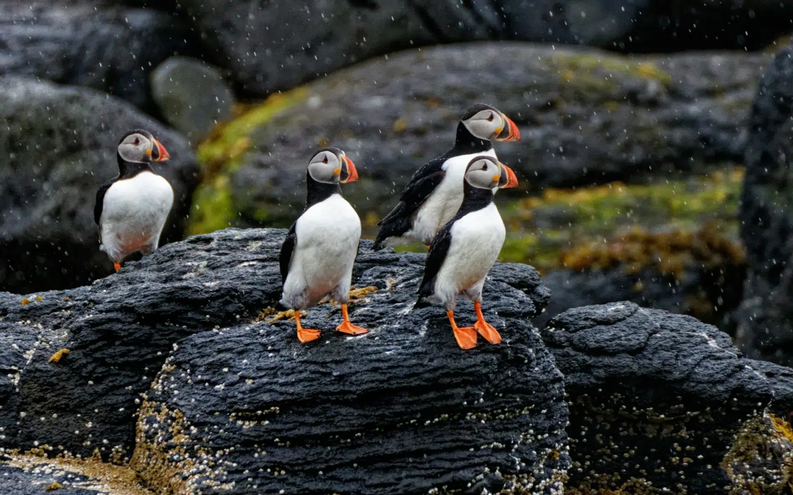Notre imaginaire repart de plus belle lorsque nous approchons du célèbre « Rocher éléphant », une falaise sculptée par la mer, tout près du port. On jurerait voir un pachyderme plonger sa trompe dans l’océan pour s’y abreuver. L’illusion est parfaite. Et si la silhouette nous amuse, les millions de macareux moines qui peuplent l’île nous émerveillent encore davantage.